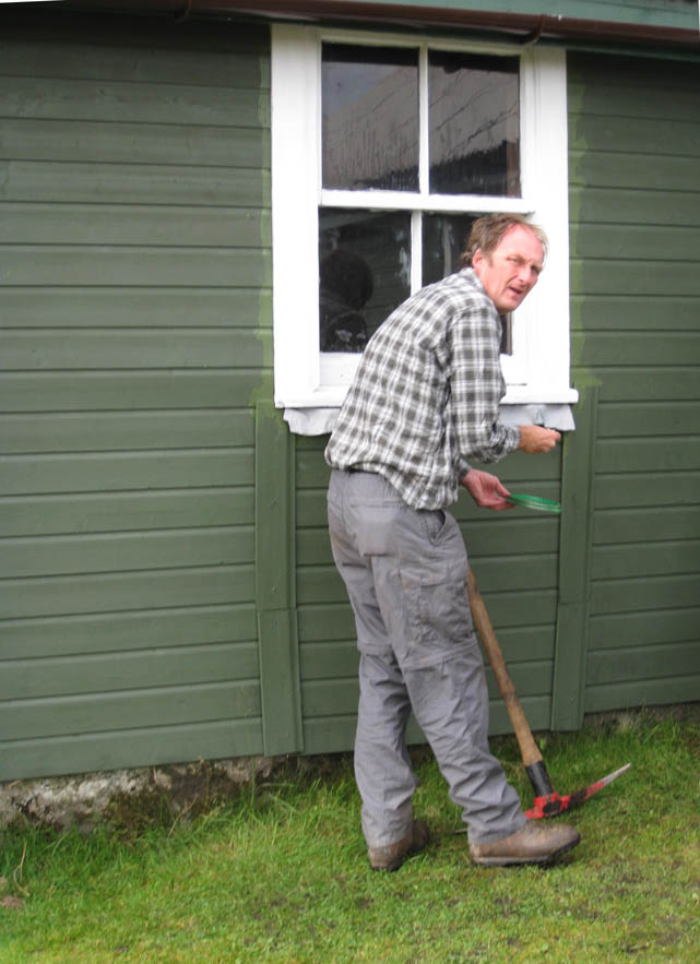 Culra Bothy Work Party Sept 14, 2008 / 05 Tom puts gloss green on the lead flashings