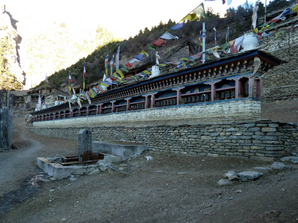 From Chame to Pisang / 17 Long group of prayer wheels in Upper Pisang