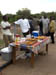Grant's unrealistic shopping lists. Grant offered to help put up and jazz up the Christmas decorations in the camp - there are three barn-like buildings that are public with ledges under the thatch that could be colourful. So I was sent to get ribbon from the village. Not a hope. The shops are very basic and the request was met with the blankest of stares. I can and do get fruit from the market on a regular basis - 40p for a hand of tiny sugar bananas (they're absolutely wonderful), 12-20p for a mango, 60p a pineapple and 40p for four tomatoes - and I plan to get my hair cut there soon. I have bought flex for the house and matches and light bulbs but ribbon! - forget it. In the end he did miracles with some cardboard and Christmas wrapping paper bells, and some 'stars' made out of plastic filing cards left over in our cottage medical notes.