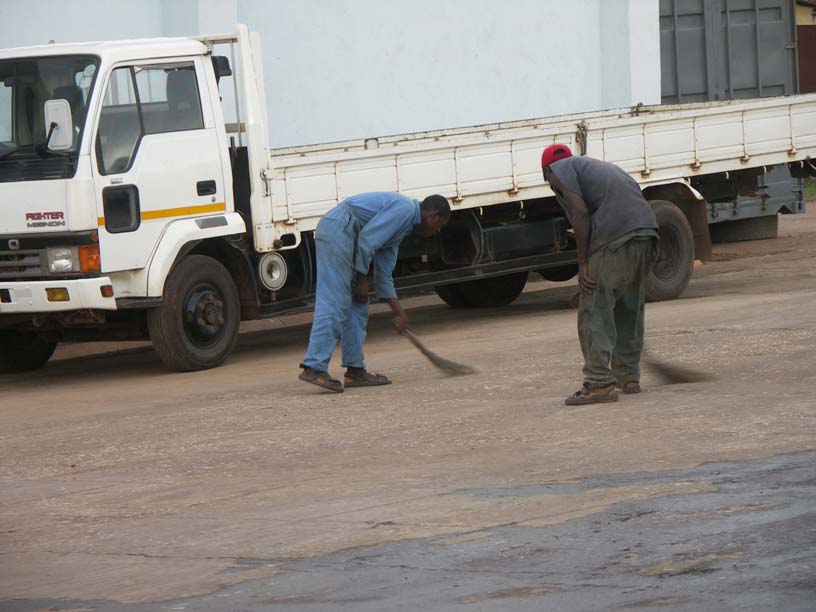 The trip to Chipata for supplies / 16 Cleaning the warehouse compound with enormous brushes