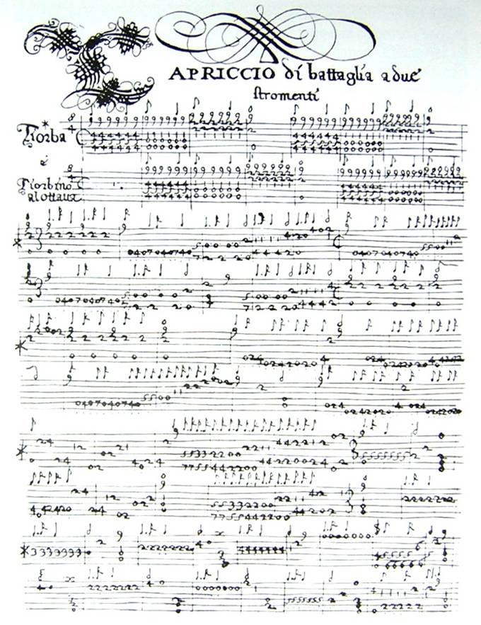 due stromenti’ by Bellerofonte Castaldi, from his Capricci a due stromenti cioè Tiorba e tiorbino, (Modena: 1622).