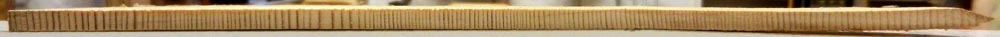 A spectacular off-cut from one of the flitches! This is one single plank showing clearly the variation in growth rate through the years used in dendrochronology.